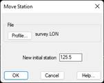 This option allows us to change the stations or distances to origin of a long section file. After selecting the file to be altered, the program displays its initial station. If a different number is entered, the program takes it as the origin and changes all the values in the file’s first column.