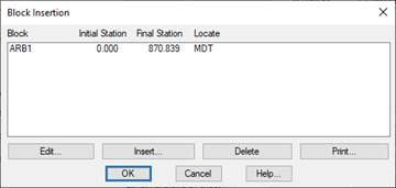 The following dialog box is displayed to insert or modify blocks for the long section drawing.