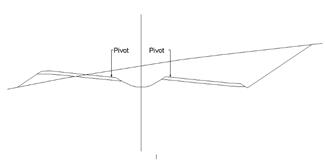 Additionally, defining the pivot element is essential, as it is at this vertex that grade line height will be applied and from where the superelevations are applied to both sides. The pivot vertex is represented in the image with a red arrow. For platforms with a median, two pivot points exist one for each roadway.