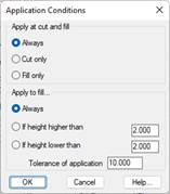 Apply at cut and fill: This is to indicate whether the vector is applied according to whether it is cut only or fill only. Deciding on the vector application is the point of connection for the vector in the corresponding platform.