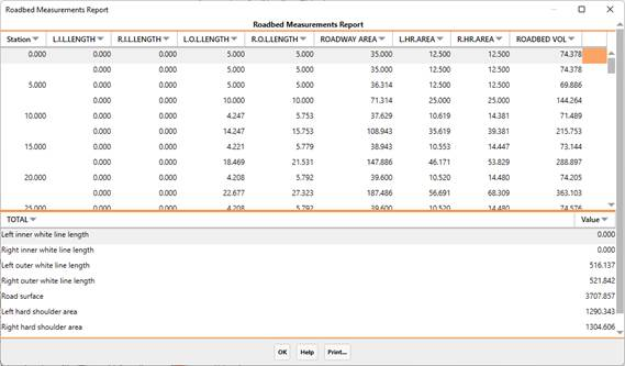 The program initially requests the segment containing the cross-section defined. One then has to enter the station interval, as well as choose whether Normal or Accumulated list is desired. Lastly, the resulting list is displayed.
