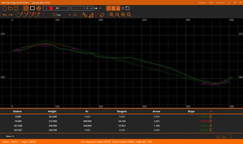This application allow us to edit and visualize a vertical alignment (ras file) and to also visualize the terrain’s long section (lon file) as reference.