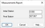 With this option, the program generates a list of measurements of the selected segment. Initially it requests the segment or road previously defined then with the below window we indicate the stations between which the calculation will be made.