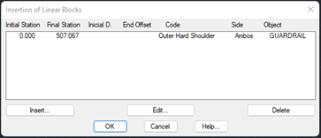 To manage the list, we have the Insert, Edit and Delete buttons. With the insertion or edition, the following window will appear from which the object to be inserted and its position with respect to the alignment of the segment will be configured.