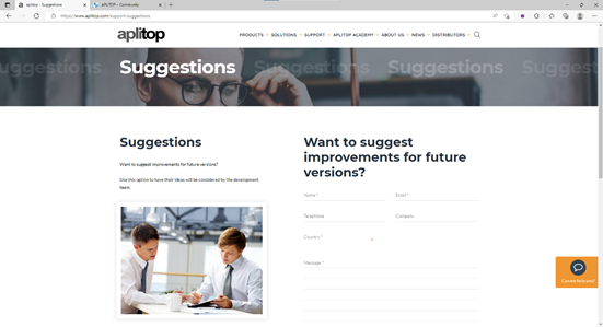 This command takes us to the Suggestions section of the Aplitop website, where you can contact Aplitop by filling out the corresponding form and your query will be answered as soon as possible.