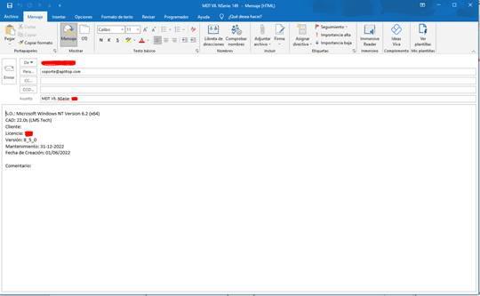 This command will open a window of your mail client with the recipient, subject and body of the completed message, where you can only describe the incident or attach screenshots with as much information as possible so that the support department can resolve the incident as soon as possible.