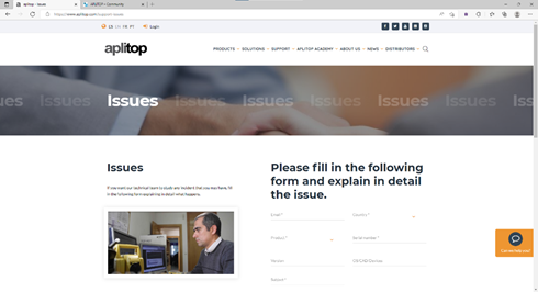 This command takes us to the Issues section of the Aplitop website, and like the previous section it serves to communicate incidents to the support team and is to contact the user as soon as possible.