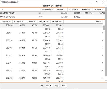 This command allows one to obtain a report containing the polar or bisection setting out data of a set of points belonging to the current drawing.