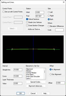 Once all the setting out values are established, the following window will be displayed to specify the elements we wish to set out in the section type created. This option will be similar to that explained in the Set-out Lines command.