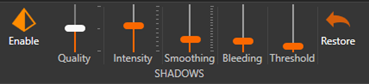 Controls the reduction of “Light bleeding”. This artifact can be seen at the point of contact of two elements, the shadow appears "detached" from the surface.§ With “bleeding”