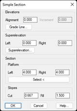 Elevations: We select the elevations of the horizontal alignment of our road or take the elevation from the grade line selected. Moreover, on selecting the grade line file we can implement a positive or negative increase in the elevation of the station to be designed.