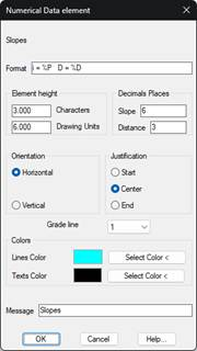 Message: Text that will appear as the element’s title on the numerical data drawing.