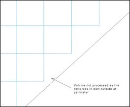 If the Create partial cells on the boundary option is activated in Settings > Volumes, in the event the cells on the calculation perimeter are only partially affected by the calculation of volume, only the affected region of the cell in question will be processed.