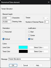 Message: Text that will appear as the element’s title on the numerical data drawing.