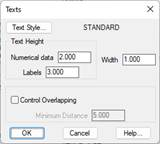 When this button is activated, the characteristics with which the numerical data texts are to be drawn can be configured. The dialog box and a description of its characteristics appear below.