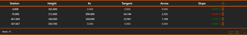 · Kv: Node’s vertical curve. It can be edited by double clicking it, it can only be confirmed if the new Kv doesn’t provoke an overlap.