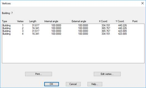 With this option you can see the information of all vertices of the building.