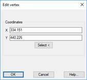 With the Edit vertex button, you can edit any vertex of the pool as well as change its coordinates. Activating the dialogue box, if the coordinates of a vertex have been changed, the pool will be updated with its new coordinates.