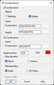This option will allow us to represent in 3D the buildings, the origin of the buildings can be Buildings created with the tools of MDT plots or simply closed polylines that represent the contour of the construction.