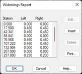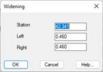 Insert and edit: These commands allow specific widenings data to be modified. When this button is activated, the following window is displayed, where the data desired may be entered.