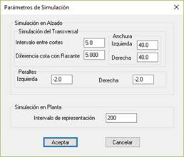 Peraltes: En el caso de que se desee simular los peraltes, establecemos los valores correspondientes tanto a la izquierda como a la derecha.