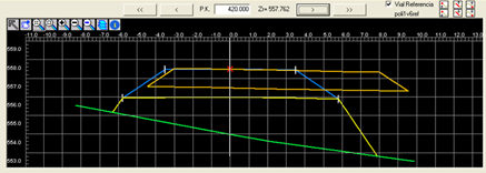 Botones para el desplazamiento a lo largo de cada uno de los pks, en el caso de seleccionar un fichero de secciones, al no existir información del terreno natural disponemos del siguiente botón