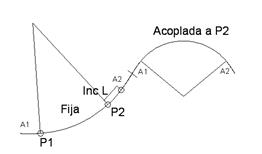 7.1.2.2. Acoplada a P2 La alineación acoplada prolonga la longitud calculada en la alineación anterior. En el nuevo punto final, se concatena la acoplada.