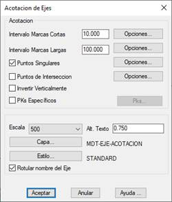 Altura texto: Valor de la altura de los textos a rotular. Este valor estará proporcionado al valor de la escala anterior.