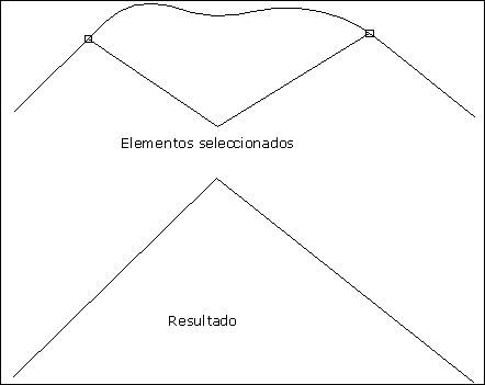 7.27. Adaptar a Rectas Este comando prolonga dos rectas hasta su intersección, eliminando los elementos intermedios. Se puede aplicar sobre un eje, o sobre un grupo de elementos de trazado.