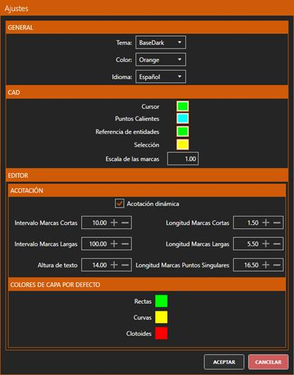 8.18.1. Ajustes En la esquina superior derecha de la ventana encontraremos un botón de Ajustes. Al hacer clic sobre él nos aparecerá el siguiente diálogo: