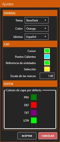 10.19.1. Ajustes En la esquina superior derecha de la ventana encontraremos un botón de Ajustes. Al hacer clic sobre él nos aparecerá el siguiente diálogo: