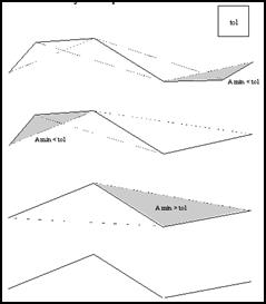 El proceso de simplificación de este algoritmo consiste en establecer una determinada tolerancia que corresponderá al parámetro área efectiva, por debajo de la cual serán eliminados los puntos cuyos correspondientes triángulos tengan menor área que dicha tolerancia. En la primera pasada se calculan las áreas de todos los triángulos y se elimina aquel punto de menor área efectiva. Una vez eliminado este punto se vuelven a calcular todas las áreas y se vuelve a eliminar el de menor área efectiva. Y así se continúa hasta que todas las áreas sean mayores que la tolerancia establecida.