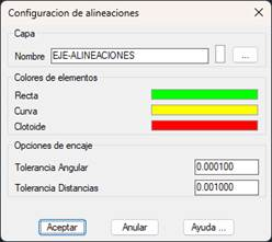 Tolerancia Angular (0.0001): diferencia máxima tolerable entre el azimut de dos elementos de trazado consecutivos, de forma que se considere que el azimut es continuo.