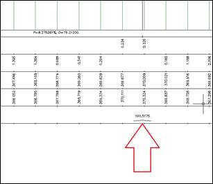 A continuación se muestra una captura en la que se puede visualizar la acotación de uno de los vértices de la rasante.