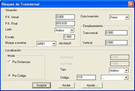 Para la inserción o modificación de bloques para dibujo de transversales nos aparecerá el siguiente diálogo: