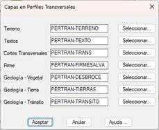 Permite establecer los nombres de las distintas capas utilizadas al trabajar con perfiles transversales.