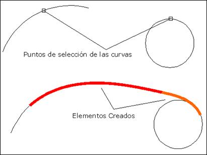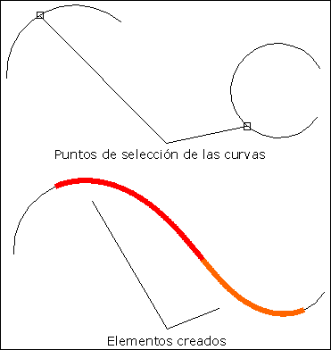 Este comando permite insertar una secuencia de dos clotoides entre dos curvas circulares, de forma que los puntos inicial y final del conjunto sean tangentes a cada una de las curvas. Los puntos utilizados para la selección de las curvas determinan el tipo de solución a calcular, distinguiéndose entre clotoides con radios de igual signo, y clotoides con radios de distinto signo.