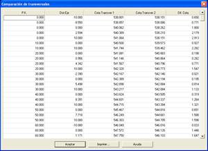 Inicialmente, nos solicita los dos perfiles que deseamos comparar y finalmente nos aparecerá el siguiente listado con la información de cota de cada uno de los transversales.