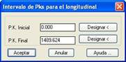 Si seleccionamos un longitudinal dibujado con MDT el programa lo detectará automáticamente, por lo que a continuación solicitará el fichero en el que se desea guardar los datos, aunque previamente solicitará el pk inicial y final del nuevo perfil a generar con posibilidad de designar sobre el mismo dibujo.