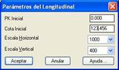 Por el contrario, si designamos una polilínea, MDT necesitará unos datos adicionales para generar el longitudinal a partir de dicha entidad. Solicitará mediante una ventana de datos la Escala Horizontal, Escala Vertical, Pk Inicial y Pk Final, y a continuación el mismo proceso que en el caso de seleccionar un perfil dibujado por MDT.