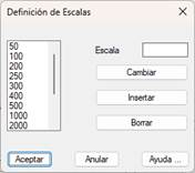 Insertar : Añade a la lista de escalas la introducida en la casilla Escala.