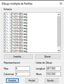 Por ello, si seleccionamos en la misma carpeta varios segmentos, nos aparecerá la siguiente ventana, en la cual podremos gestionar los ficheros a dibujar.