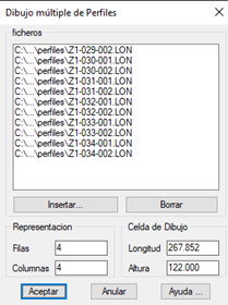 Adicionalmente, con los botones de Insertar y Borrar, posteriormente, tenemos la posibilidad de añadir mas perfiles que pudieran estár ubicados en otra carpeta, o eliminar alguno de la lista porque no deseamos dibujarlo.