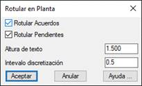 Rotular Acuerdos: Si se activa esta opción, se dibujarán los acuerdos verticales, tangentes de entrada y tangentes de salida.