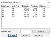 · Tramos: Indicamos los diámetros de tuberías entre cada uno de los nodos que componen la misma.