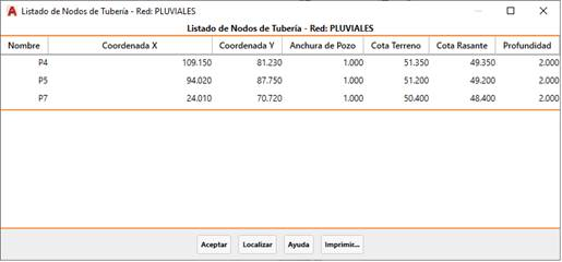 Nodos: Al presionar este botón se mostrará un listado de todos los nodos por los cuales pasa el tramo de tubería a definir.