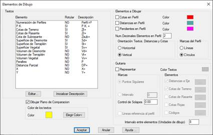 Al presionar este botón accederemos a una nueva ventana donde se pueden configurar una serie de características de los perfiles que el programa puede rotular en el dibujo. A continuación se visualiza la ventana que aparece y se describen sus características.