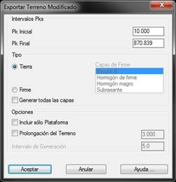 Con la ejecución de este comando se va a generar el terreno modificado asociado a un segmento definido previamente (ver Definición de Segmento en la sección de Ejes).
