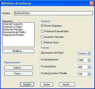 Seleccionamos la guitarra asociada al perfil que se va a representar, en el desplegable tenemos disponibles las distintas guitarras definidas por el usuario.