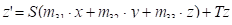 x', y', z' = Coordenadas X,Y,Z transformadas
